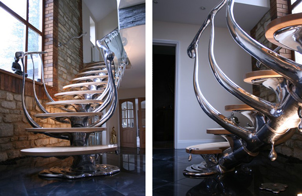 Other than wood other materials like metal, glass and other materials have also been used to add more beauty and uniqueness to thei design. A variety of different designs including round shape stairs,vertical straight stairs, and the most unique of all is the slide stairs. The slide stair consists of two parts one for going up and another is not a stair but a slide by which one can come down. A number of designs are shown in this article that you can select for your new home.