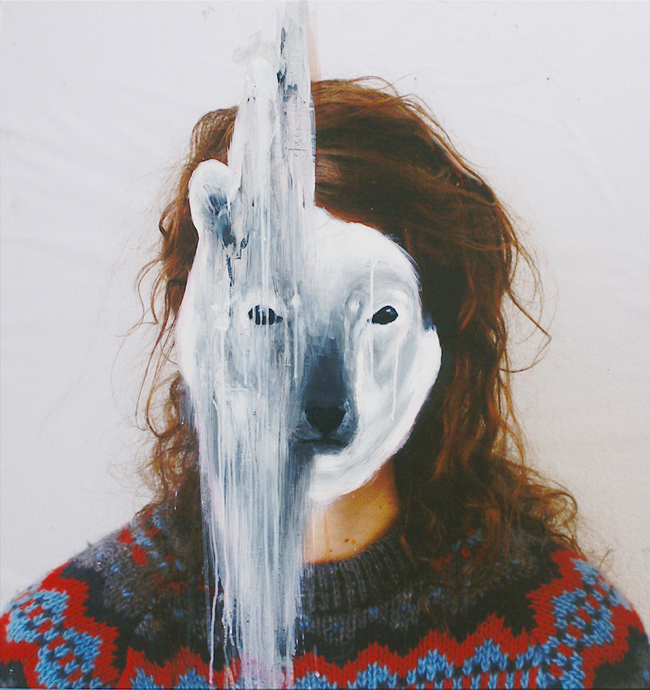 It is said that every human being’s personality has two aspects: one of an angel and other of a beast. An artist from Rennes, Charlotte Caron has tried to show this bestial aspect of human personality by realizing acrylic paint portraits of animals on photographs of human beings. The artist presents a series of paintings entitled “Portrait.” These twelve portraits of men and women, seen from the front and side view, incorporate the expressionless animal head.