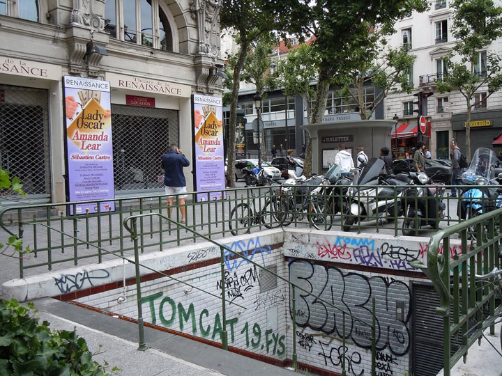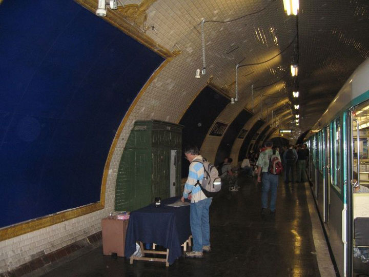 It is located on line 8 and 9 and was closed in 1939 during world war 2. It was reopened after the Liberation of Paris, but being too close to the station Strasbourg-Saint-Denis, it was closed again. For several years, it used to welcome the homeless and is now visited by the passionate of art of the RATP.