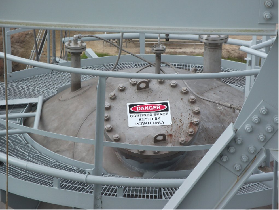 An important industrial application of safety gas analyzer technology is testing the safety of the atmosphere inside a confined space, such as an industrial vessel that has been emptied in preparation for workers to enter and perform maintenance work. Virtually all pressure vessels are classified as confined spaces from the perspective of internal maintenance work, and many are explicitly labeled as such to remind workers of the danger: