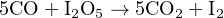Carbon monoxide may be sensed by an electrochemical cell, using iodine pentoxide as the reacting compound. The balanced chemical reaction is as follows: