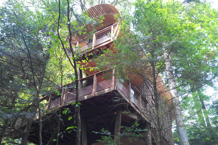 3 platforms suspended in the air, this exceptional cabin of 48 m² can accommodate up to 14 people. This true masterpiece, had required numerous hours of hard work to its owner Abane. Its construction costed 160,000 euros. It is also possible to stay a night in it at much more affordable rate of 350€ per night.