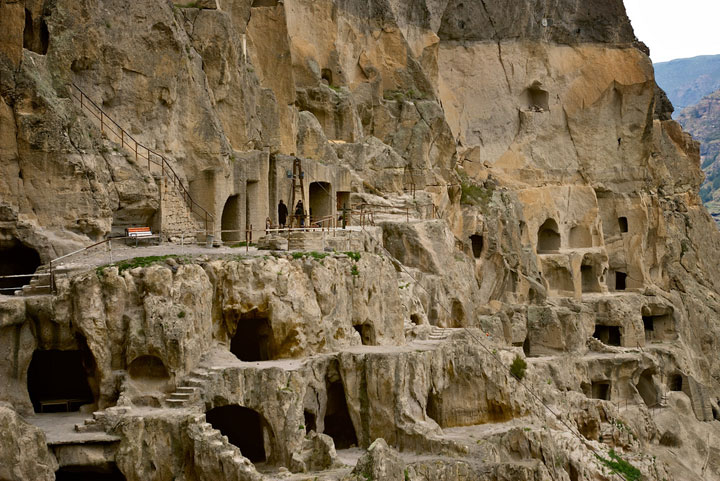 Aside from a small group of monks, the cave city of Vardzia is now abandoned. At its peak in the Middle Ages, the town included thousands of homes and a complex irrigation system.