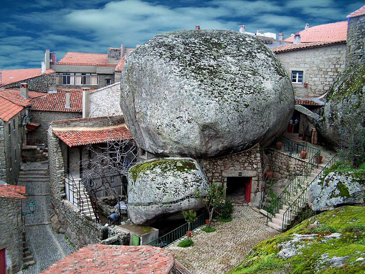 Located on a mountain, Portuguese village of Monsanto has its homes built on the rocks and the cliffs.