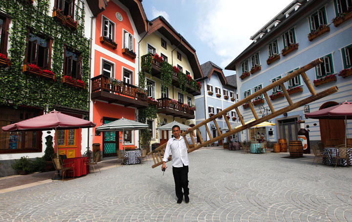 A Chinese real estate development company recreates the Austrian village of Hallstatt in the Chinese city of Huizhou, recreating the European architecture in China.