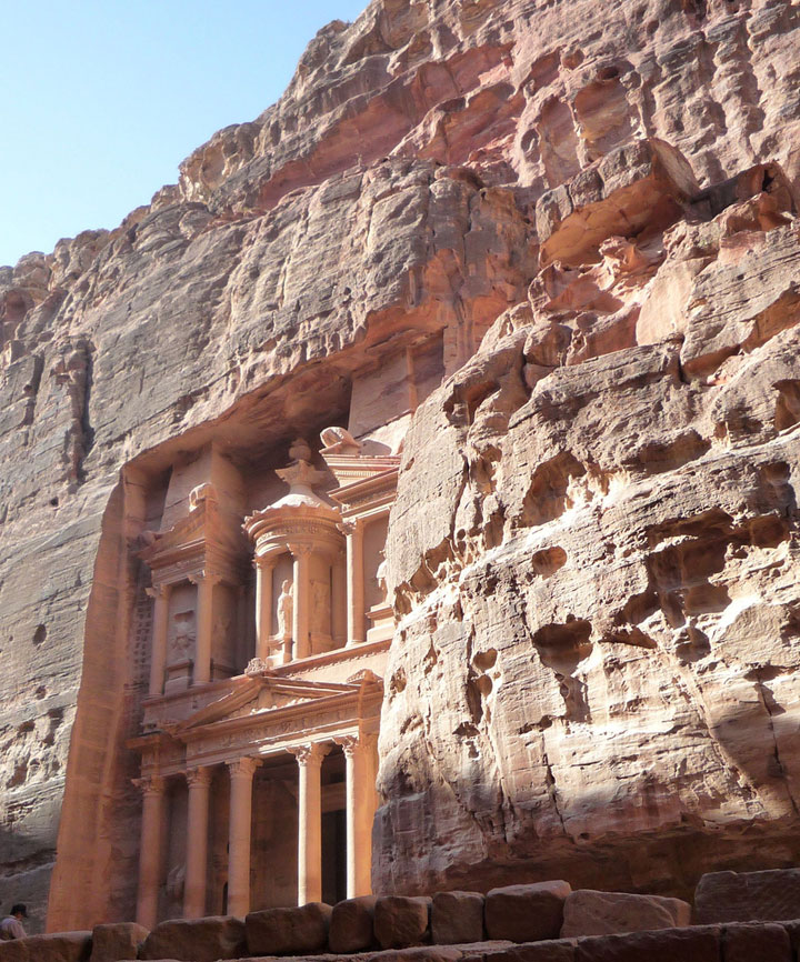 The city of Petra was established around the sixth century BC and eventually became an important place in the trade routes linking Asia and Europe. The entire city is carved into the cliffs including homes, government buildings and places of worship.