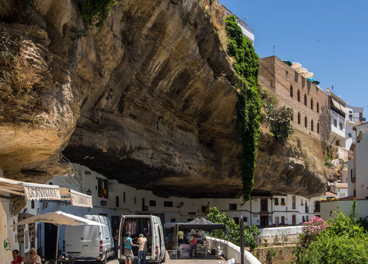 Setenil de las Bodegas is a small city with many buildings and homes built on the rocky overhangs located in the region. It gives a unique urban landscape to the area.