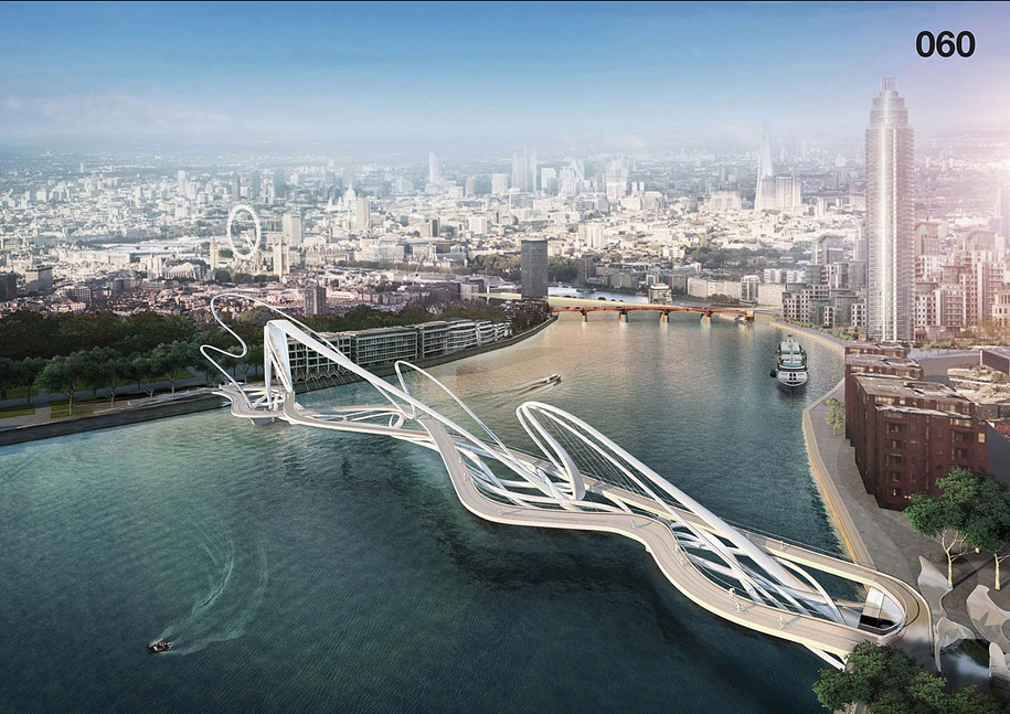 Many are fascinated by the city of London and its famous bridges like Tower Bridge and London Bridge etc. Tower Bridge has indeed gained an iconic value for the city. Well, now city of London is holding a competition for a new bridge that would be located between Nine Elms and Pimlico. This bridge is meant to be used by the cyclists and the pedestrians, and being a free a game, many crazy rather wild ideas have been put forward. Some designs are curved while some of them have a rather futuristic look. Some, even remind us of the fiction movies and appear straight out of the alien planets. Some have even enclosed the bridge.