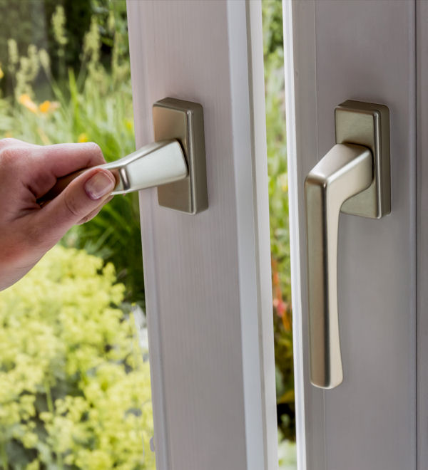 Eine Frau öffnet ein Fenster zum Lüften der Wohnung. Frische Luft im Zimmer
