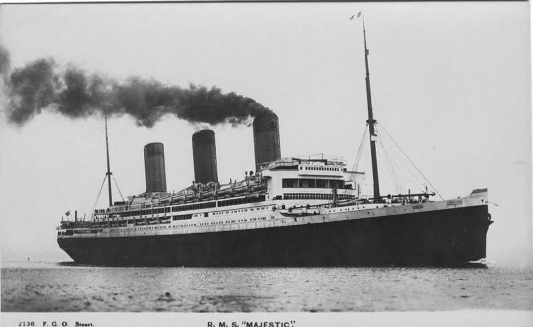 The construction of the Majestic began in 1914 by the company HAPAG. The work was interrupted during World War I and it was transferred to UK in 1919 as war damages. At its commissioning in 1922, the Majestic was the largest liner in the world, it measured 291 meters. The ship suffered a fire in 1939 and was dismantled in 1943.