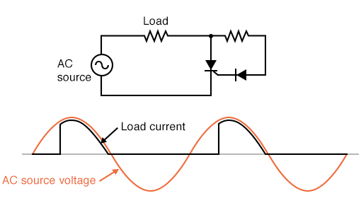 Resistance inserted in gate circuit; less than half-wave current through load.