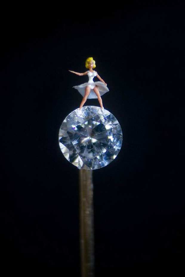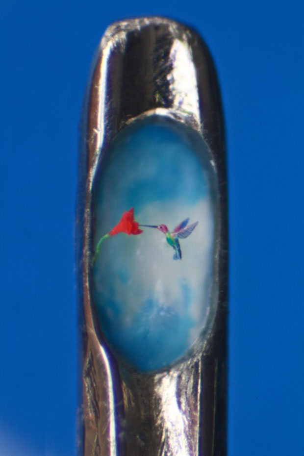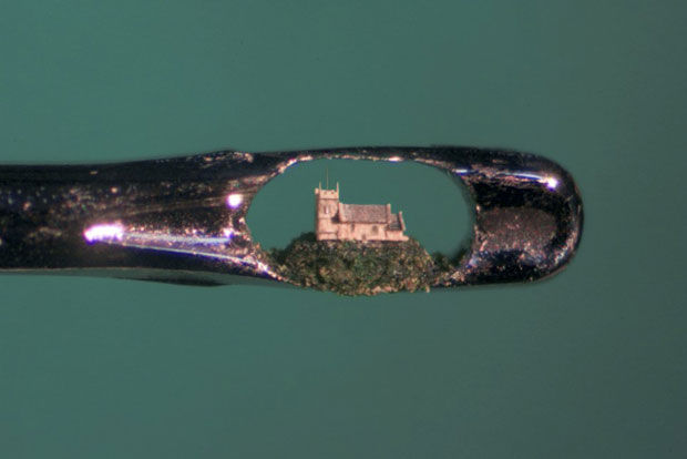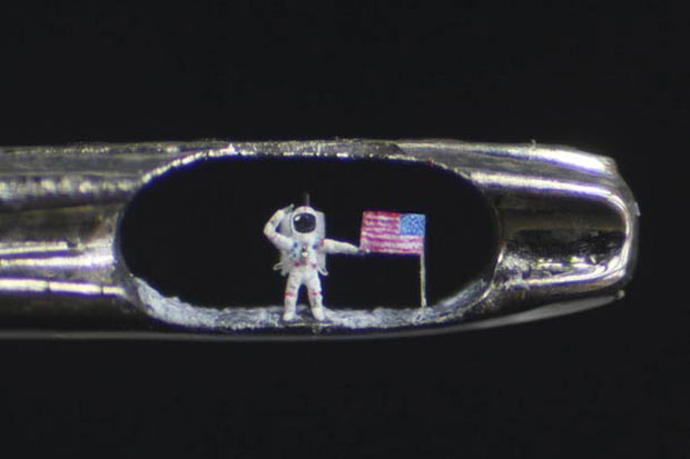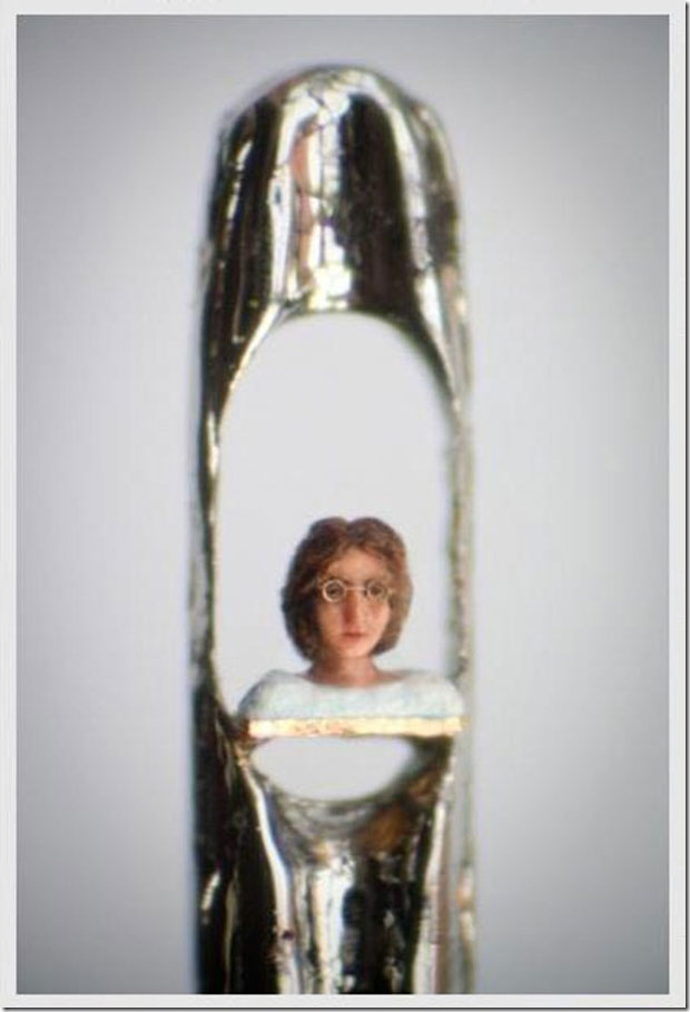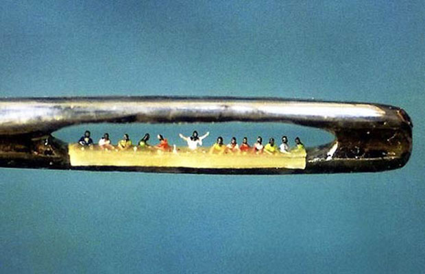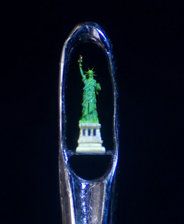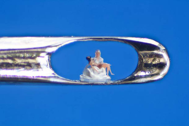 Some people find it very difficult to pass a thread through the head of a sewing needle pin. Despite of that, an American artist creates surprising microscopic sculptures of the size of the head of the needle. Discover without delay this interesting artwork.