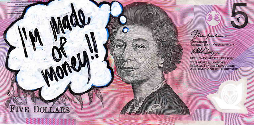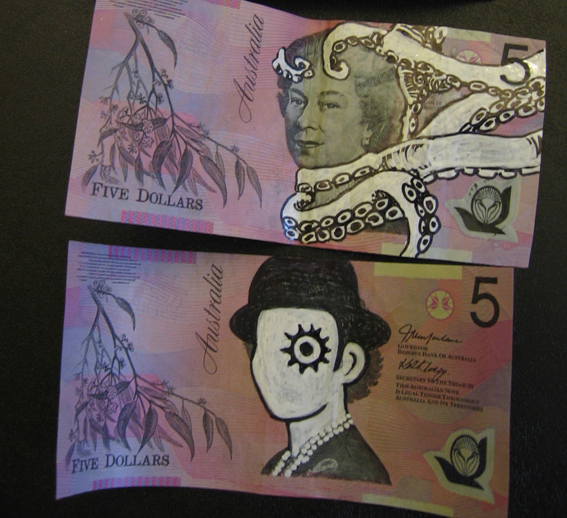 An anonymous artist has drawn the caricatures of Her Majesty the Queen of England in very funny situations. And he has done this using the 5 Australian dollars note. Discover this unique collection.
