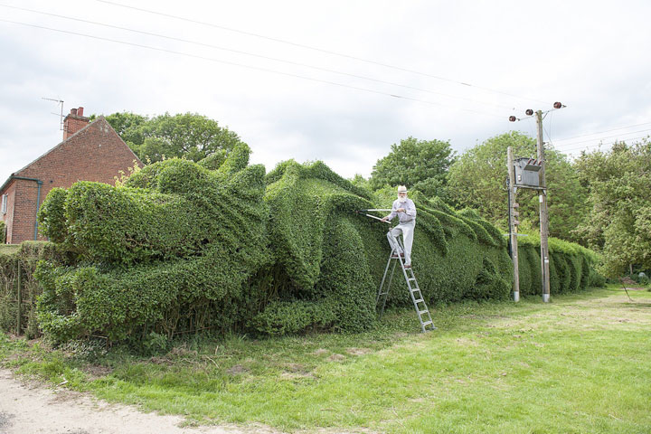 John Brooker is a 75 years old English gardener living in Norfolk, UK. He has a hedge in his garden like no other. Indeed, it is nothing but a 30 meters long dragon! This creature has six legs, wings and carefully sharpened teeth and many other fine details of a real dragon. The sculpture is really breathtaking!