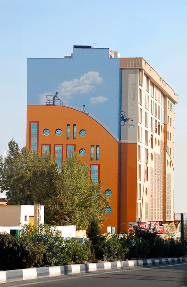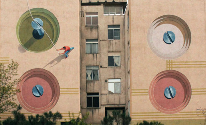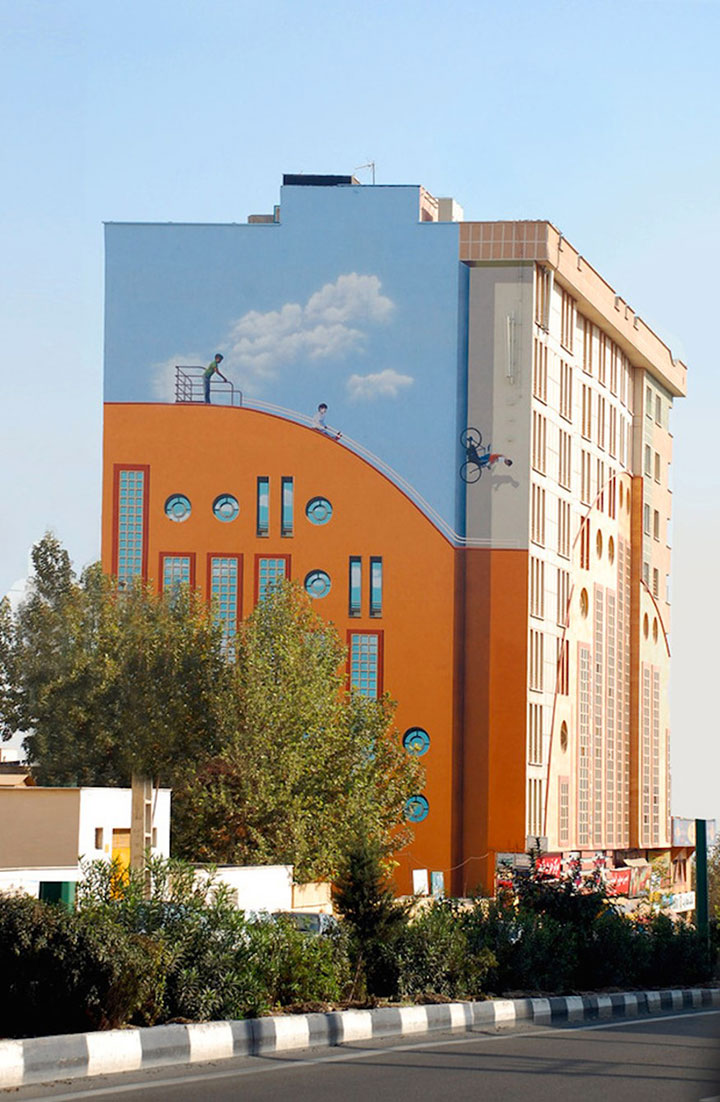 Mehdi Ghadyanloo is a member of the artist collective Blue Sky Painters Company, specializing in mural paintings. Their creations have been Illuminating some buildings of Tehran, capital of Iran for several years now.