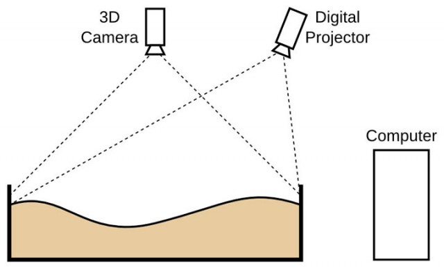 This is not the first time the camera Kinect 3D from Microsoft has been used to carry out some experiments. Here it is accompanied by a video projector, a computer, a simulation software and a sandbox! Researchers at group KeckCAVES and UC David have developed this new augmented reality experience to play magic with the surface of sand.