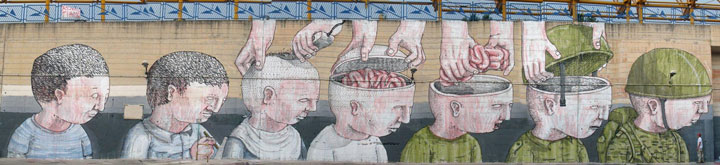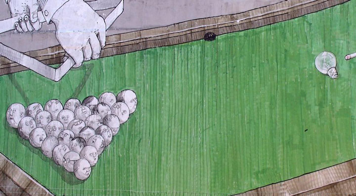 BLU is an Italian painter like no other, he expresses his ideas and feelings with respect to the events that shape our modern world using beautiful murals. He has been actively pursuing his passion of mural art since 2000, around different cities in the world. We have selected a number of his most most successful works.
