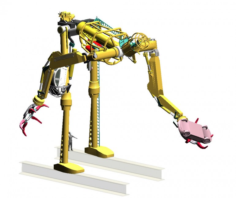What come in mind while thinking about the robot is stupendous, gigantic and enormous. Yes, it is the case. A number of large number of steel pieces are required to build this amazing robot whose weight is hundreds of tons. An extraordinary strength is required to absorb the forces produced by hurling of cars. A traditional crane develops a large amount of strain in one direction just to lift up a car while BugJuggler would require even larger amount of forces to handle juggling.