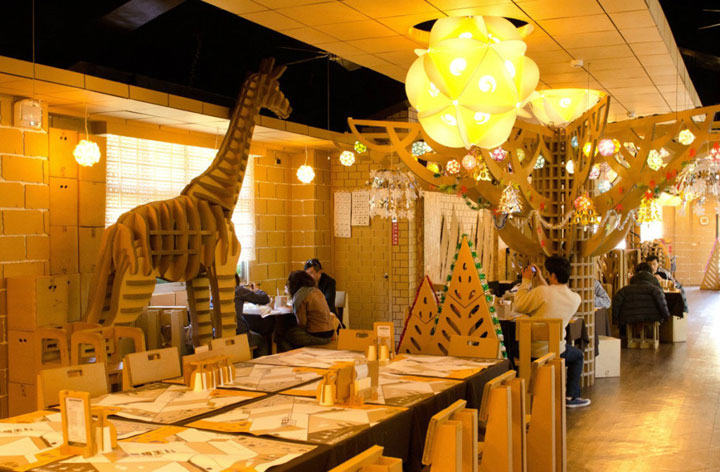 The person behind this concept is Huang Fang Liang, who is none other than the founder of Chin Tang Paperware, a stationery company. According to him, all objects once used should be recycled again to save our planet. He says: “I wanted to prove to people that cardboard could be used in the same way as we use plastic or wood to create objects.” As for the strength of the material he says,” People often ask if these tables and chairs will collapse? Our boss, who weighs more than 100 pounds sat on chairs. Then, one of the waitresses sat on his lap and chair did not collapse “.