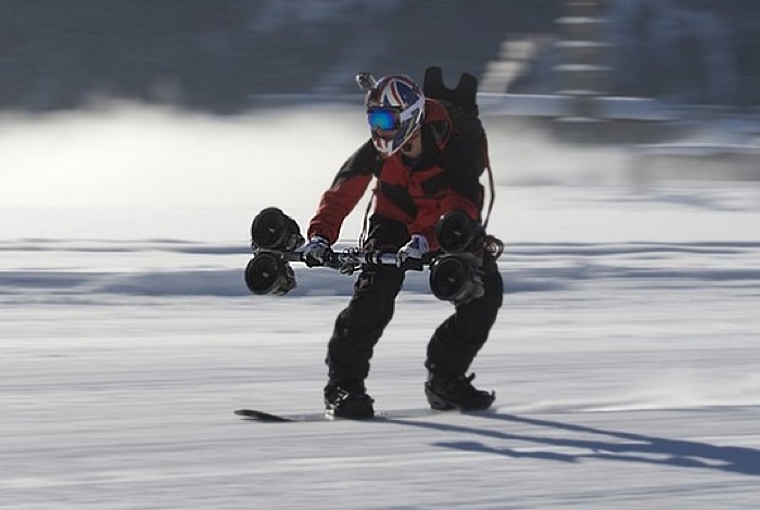 To power up the thruster, on-board battery is used. All the four engines of the thrusters have been tested by multiple skiers, skaters, snowboarders and paragliders. Interestingly, the thruster has hit the record speed of 50 miles/hour for paragliding. The speed was accomplished with only one thruster and even higher speed can be achieved with four engines. This run win the photo below was made by Jamie Barrow over the icy lake St. Moritz, Switzerland. The thruster is developed by Contorent a UK based company.
