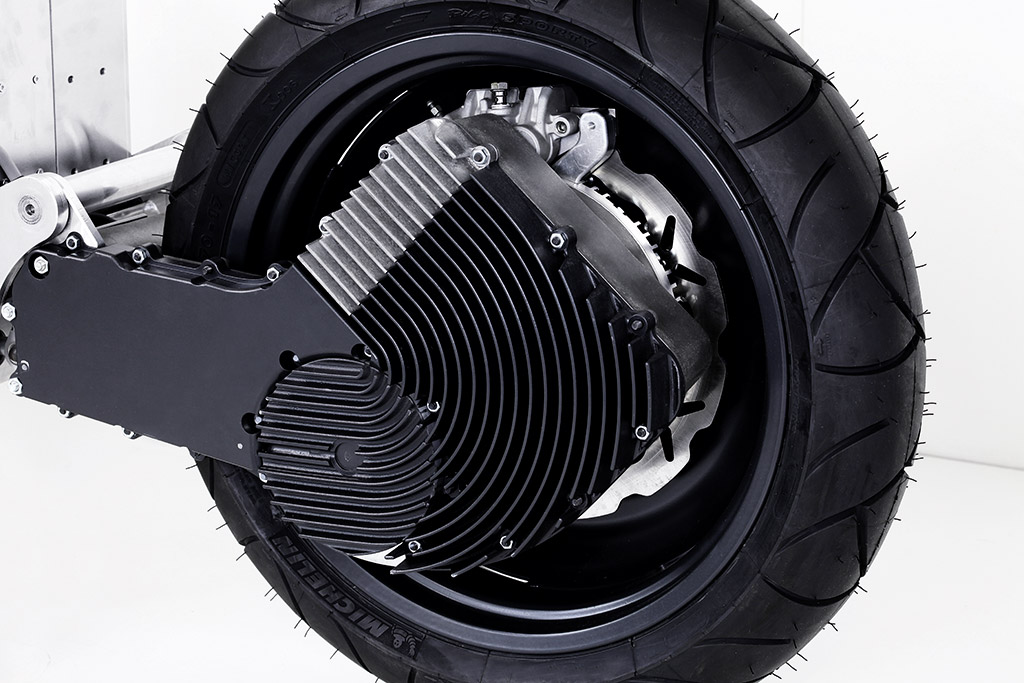 A hub electric motor, which is almost noiseless, is fitted into the rear wheel of the bike. This 11 kilowatt motor is able to provide a power of almost 14 hp (horsepower). The bike can attain a maximum speed of 75miles per hour. The motor works on the principle of induction. A coil inside the motor generates the rotating electromagnetic field which induces current in the outer part of the motor and it starts moving with the rotating electromagnetic field. This outer part is connected with wheel which also starts moving. This hub motor does not require any axles or heavy gear train for the transmission of motor torque. This reduce weight and improves the efficiency.