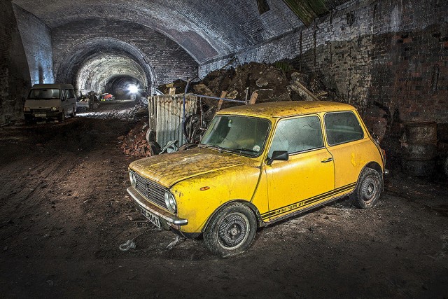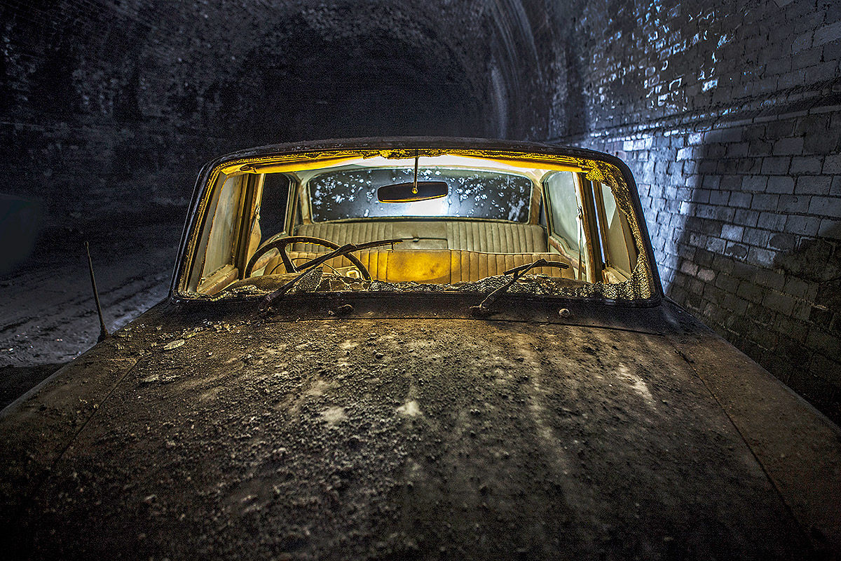 Built for the local railway in 1896, this section was unused since 1956. In 1975, some people turned this 800 meters long place into a large garage. The tunnel collapsed and was all forgotten when Mr. Willsbrowne found it with its treasures. With the help of photographer specializing in cars, Charlie Magee, they have immortalized these lifeless vehicles. A true moment of mechanical history.