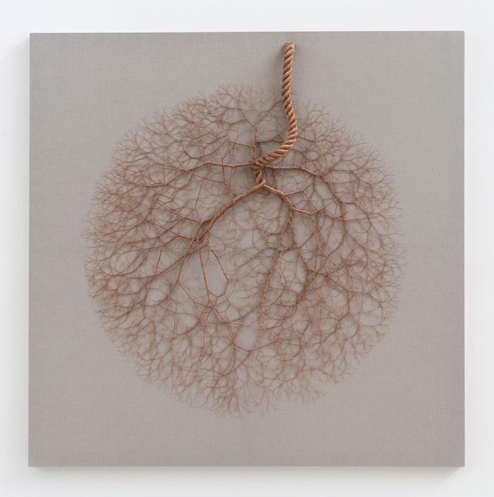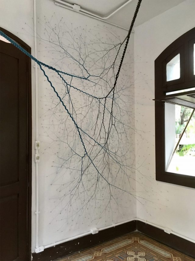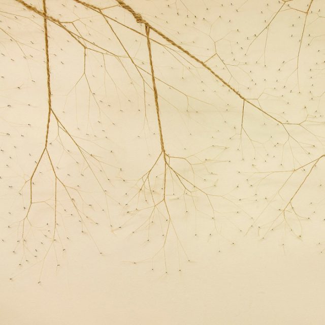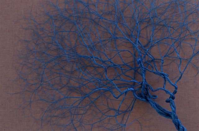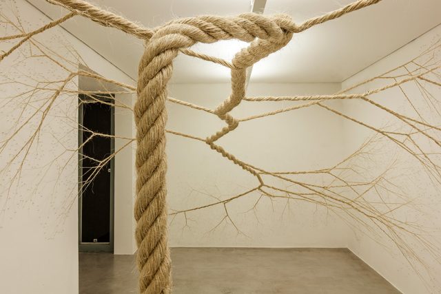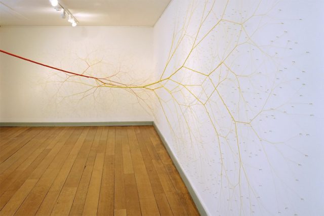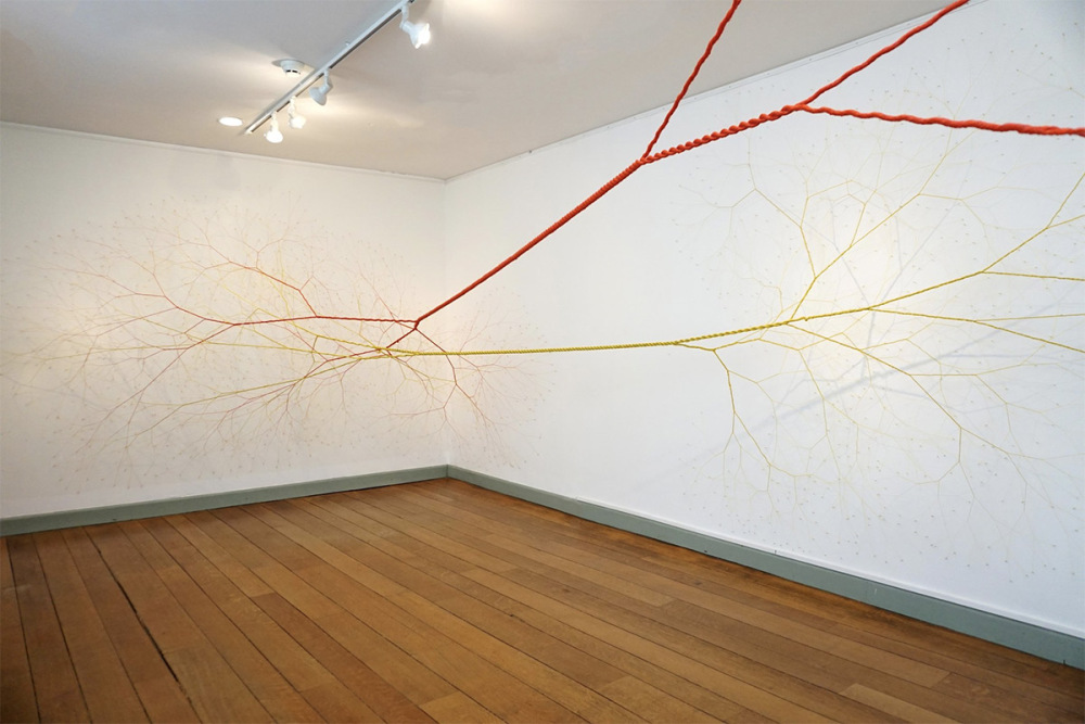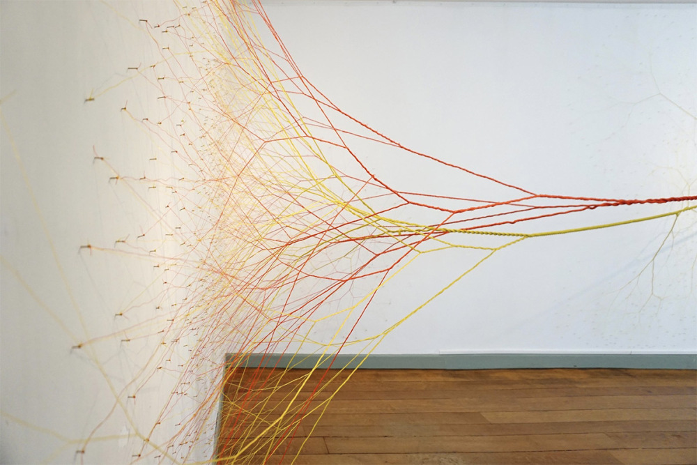 The artist Janaina Mello Landini makes complex installations and sculptural works based on non-curved strings that branch out like roots of trees.