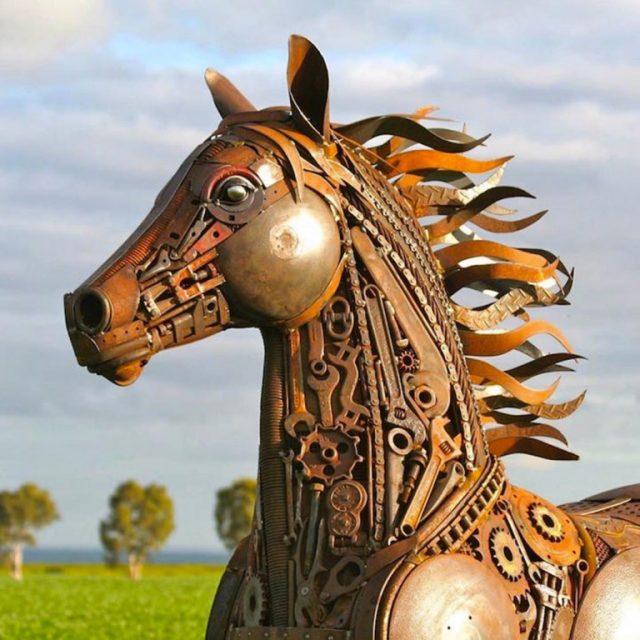 Jordan Sprigg is an Australian self-taught artist who gives life to the metal through sculptures made of old machinery, or used tools and other objects. “I am the son of a farmer, so I used what I could and I found these objects were very helpful in making art – and they were not expensive,” Explain to he said.