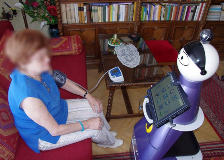 Kompai is a humanoid robot with two wheels that allow it to move with ease in your home. It is equipped with a camera on the top of its head, which allows it to see where it goes and recognize the people with whom it must interact. It also has a multitude of sensors that can be placed on a bed, sofa, etc.., Which allow Kompai to monitor the health of the patient. It can indicate to you if there is any anomaly in your pulse rate, respiration or hydration level. Hence, the robot can help you prevent the alarming health situations.
