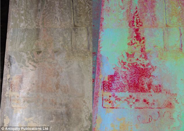 Decorrelation stretch analysis is the same technology adopted by the NASA to look at the hidden contrasts in Martian rock photos as sent by MARS Rover. The old temple was built by the Khmer King Suryavarman II. On first glance, it looks like a big stone but it actually contains numerous small elevated towers, chambers, porches and galleries. All the parts of the temple are connected with one another through stairs. The paintings reveal the pictures of Hanuman god, monkeys and lions, the most important part of the Hindu religion. These paintings date back to the 15th century when temple was restored as a Hindu worship site for God Vishnu. The paintings also contain the pictures of the magnificent temple itself.