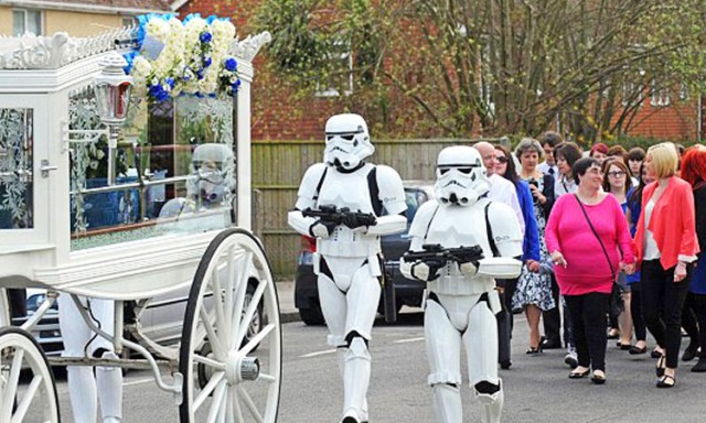 Undeniable fan of Star Wars, his last but dearest wish was to have his funeral in the colors of the saga. The Stormtroopers and R2-D2 accompanied the procession near the funeral carriage on which was written “Jedi”. His parents gave him the most beautiful funeral ceremonies that he had wished for in his mind.