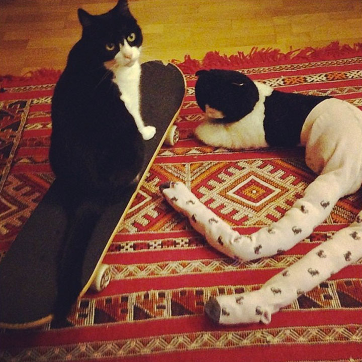 Most of these photos are of dogs. However, there are also some photos of the cats whose legs appear to become long and slender. A crazy concept we owe to Gucci and his master, who even created a Tumblr and Facebook page just for that.