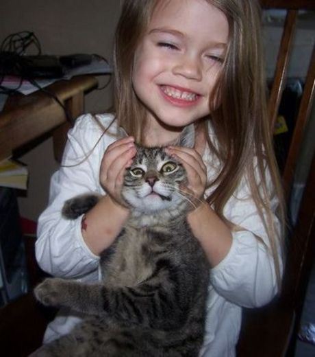 Surprise, fear, nervousness, these are the expression that can be read on the faces of these animals.Whether dogs or cats, all are particularly good at expressing those feelings. In one of the photos, for example, we can see a cat trying to take out its tongue. Here, we can see the playful side of a cat’s personality. Similarly, we can see a small girl posing for photo holding the head of a cat. But the cat does not seem at all enjoying this position. Just look at his head to understand that it is not at all comfortable.