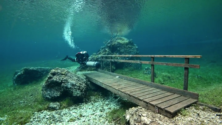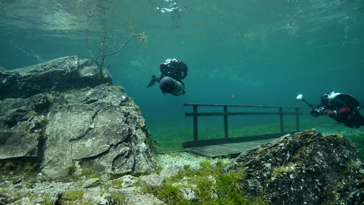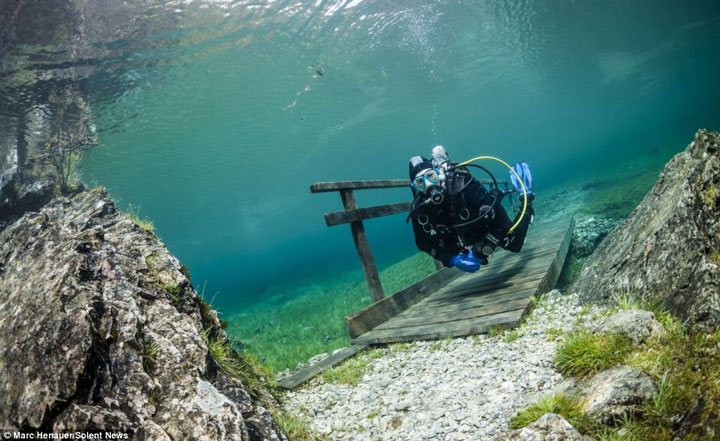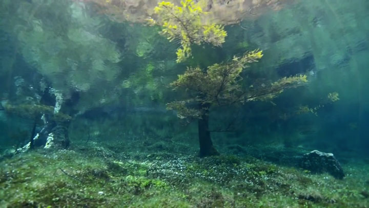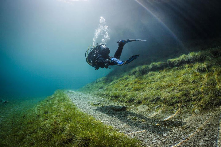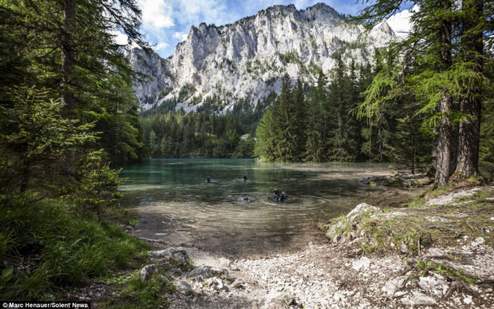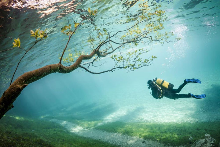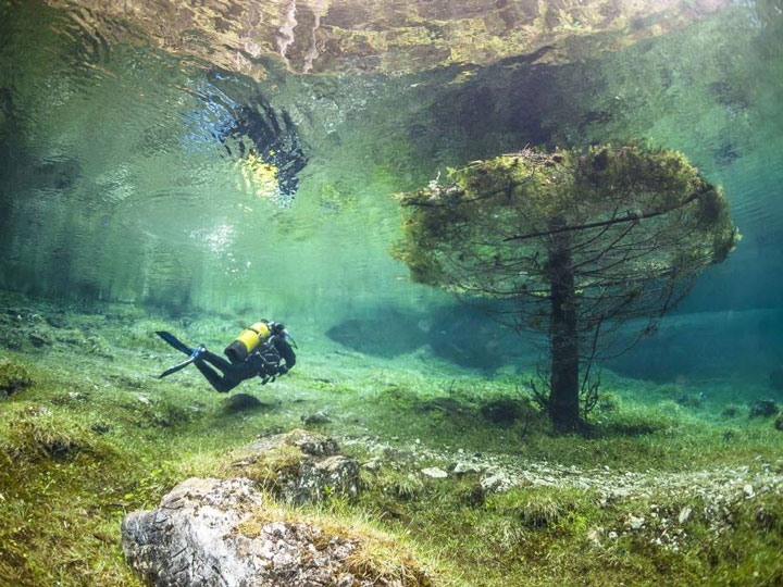 The diver and Austrian amateur photographer Marc Henauer, has tried to explore this mysterious lake. Located in the region of Styria in Austria, the Grüner See (Green Lake in German) takes its name from the emerald green color of its pure and limpid water. Beyond the beauty of its waters and wildlife that it hosts within it, the Grüner See has the distinction of changing its shape in different seasons.