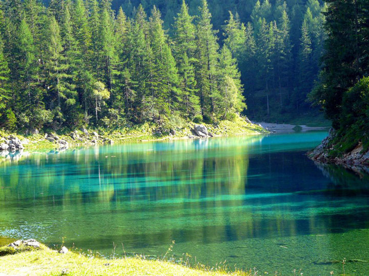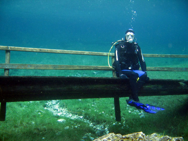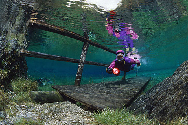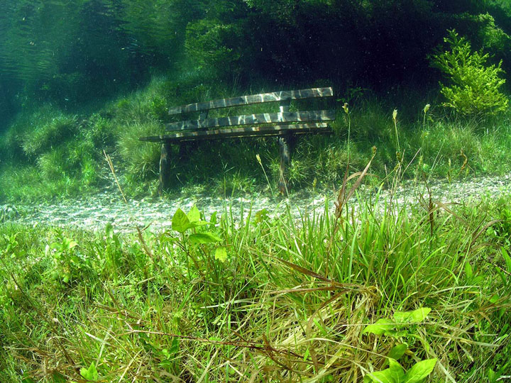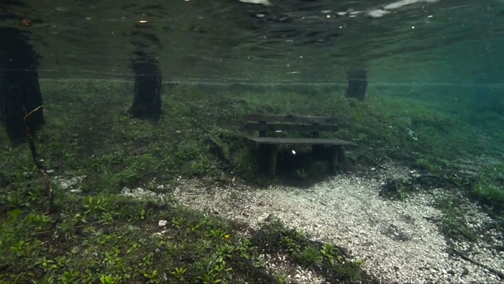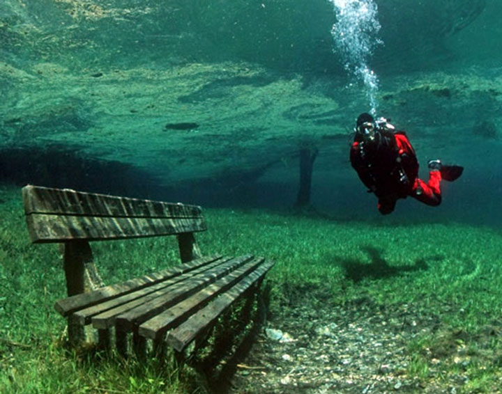 Each year during the spring, the melting of glacier of the Hochschwab, overlooking the Grüner See, transforms the landscape: During the winter Grüner See is a park popular with hikers, sunny days turn it into a diving spot with unusual experience of seeing the fish swim amid wooden benches and walking trails.