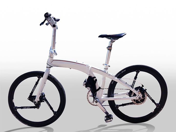 SoftWheel design is based upon the concept of “symmetrical and selective technology” which involves the use of three compression cylinders. These cylinders act as shock absorber in the wheel before they could reach the driver. The goal of this concept is to make the hub of the wheel float in the air and absorb the shocks. The results are quite promising as user can as comfortably move down the stairs as it is to go down a plain slope as the effect of shocks and bumps has practically been cancelled.
