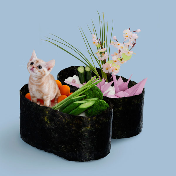 The Japanese are always known have crazy ideas, this is demonstrated by this advertisements that looks shocking. The Japanese agency, Tange & Nakimushi Peanuts, has created a series of posters, stickers and postcards on which cute cats dressed as sushi. It is in fact photographs of cats dressed up in costumes representing the different foods(sushi tuna, omelette, salmon, etc..). But that is not all, the agency has pushed the idea even further by making a short video explaining the history of Neko-sushi (translated literally as cat sushi). Discover the photographs of this crazy publicity campaign.