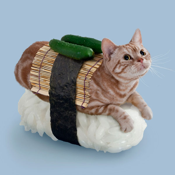 So the rumors turned out to be true: the Japanese not only eat fish but they also appreciate eating the harmless cats. Obviously, this is publicity campaign of a company that has created a series of posters and stickers with the image of cats transformed into sushi!