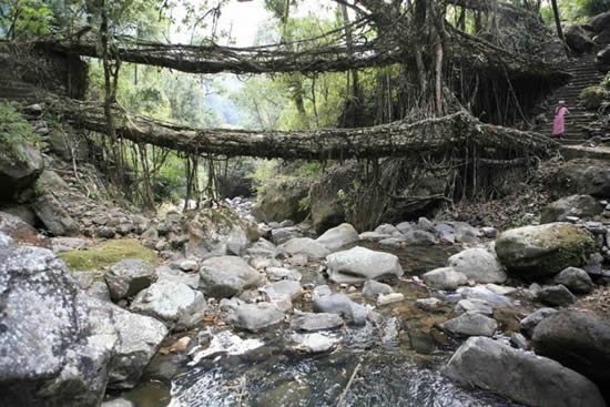Deep inside the Northern India lies one of the most humid places on earth. Here the bridges are not built, rather they are grown as tree roots.