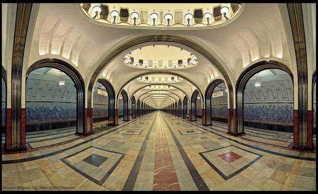 Moscow’s Metro system is one of the most well known monuments from the Soviet era. The work on the construction of the Metro started in 1931 and it was completed in 1935. At that time it had one 6.8 miles long line that served 13 Metro stations. New lines and stations were added progressively. Today Moscow’s metro system measures an impressive total length of 202 miles with 195 stations. This project was promoted as a symbol of the Communist System and a propaganda tool to daily remind the Soviet people of the superiority of the system. It impresses us with the quality of architecture, its big chandelliers and its traditional as well as modern interior design.