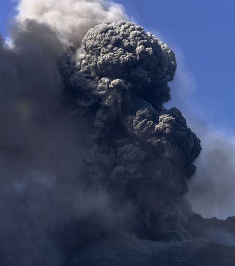 The Eruption Of A Volcano Accompanied By Strong Lightning