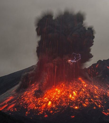 The Eruption Of A Volcano Accompanied By Strong Lightning