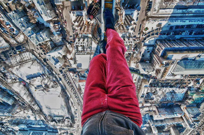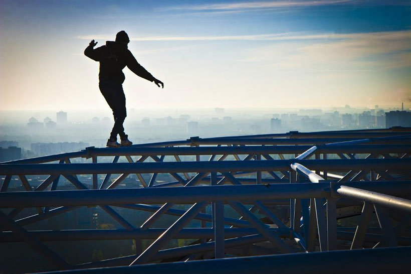In Ukraine, there is a group of youngsters having an extremely adventurous hobby. They climb over the tallest buildings of their country and hang themselves from the top of those buildings. After watching these pictures, you will come to know that these young boys are fearless, even suspended in a extremely dangerous position. If you see them standing on the edge of a narrow pole at the height of hundreds of feet, doing these tricks, will definitely make you scream. Moreover, sometimes they hang themselves in empty spaces several feets high without the support of a rope or anything. Which is really astonishing. These Ukrainians “Skywalkers” are in their twenties and they want to become professional stuntmen.