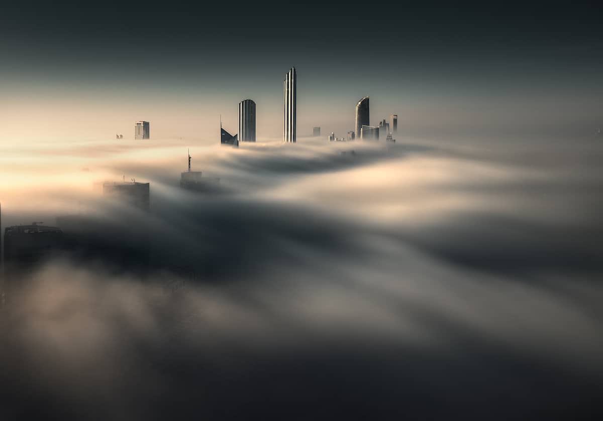 The lover of these architectures is also fascinated by the fog, present in winter, once summer comes, the sky is cloudless. “The fog always appears in a different form and color, from city lights at night, to golden clouds during sunrise,” says Khalid Al Hammadi at My Modern Met .
