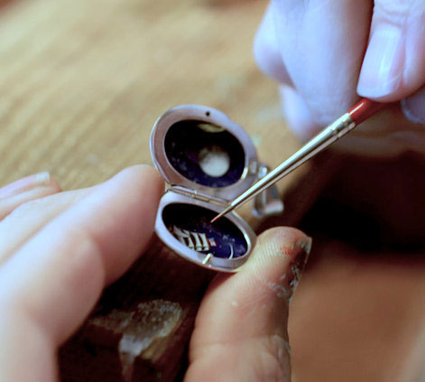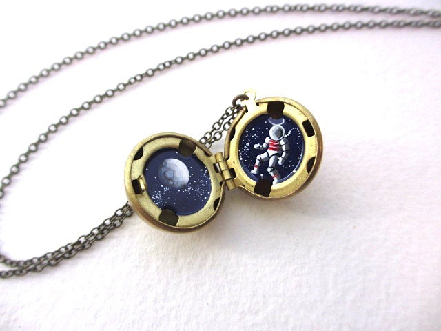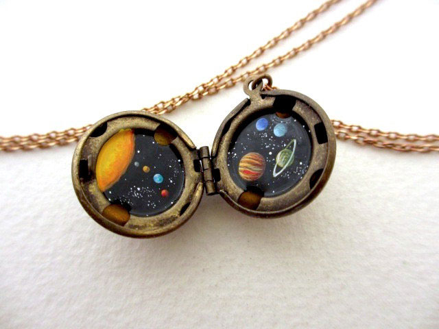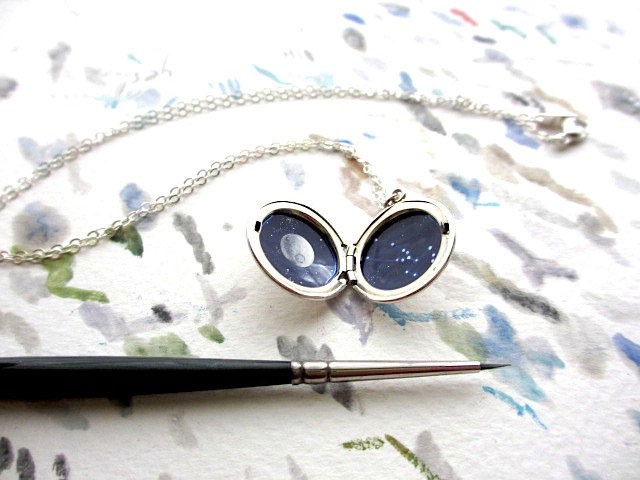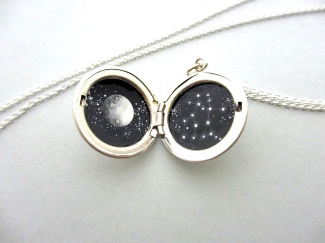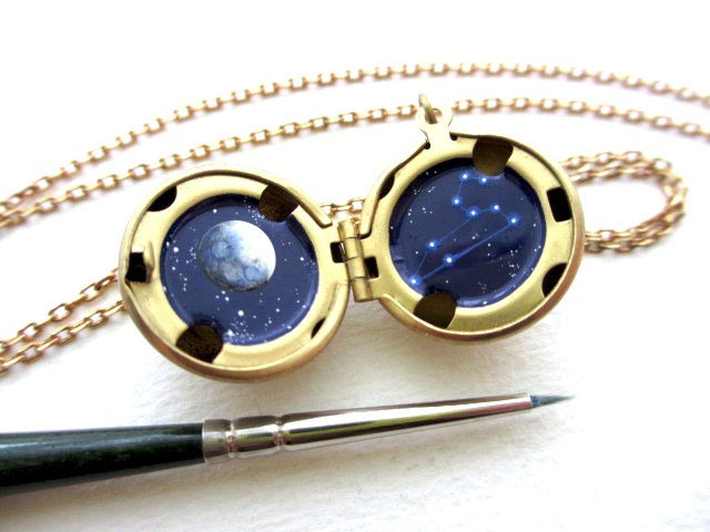 Before starting to paint a star constellations into a necklace, Khara starts by oxidizing the jewelry themselves, making them look more “rustic” and “worn”. It was only then that she begins to paint by hand and using oil painting she painstakingly draws constellations and other stars of our cosmos with admirable precision.