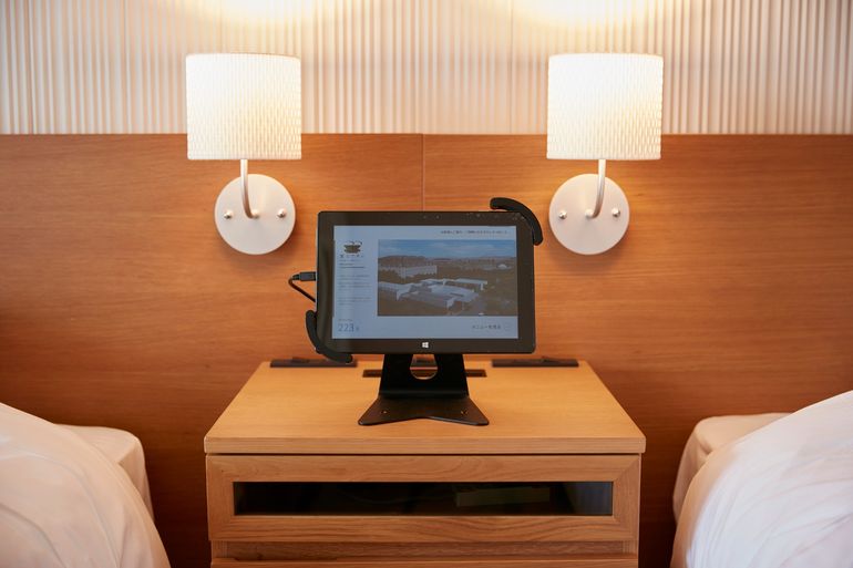 Motion sensors are used to switch the lights inside a room on only when there is somebody in the room. Otherwise, lights are off to save the energy. All the different amenities available in the room can easily be controlled using a tablet.