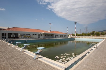 Murky water and rubbish fill an abandoned training pool for athletes at the Olympic village on the northern fringes of Athens, Thursday, Aug. 2, 2012. After the Athens 2004 Games, the village was used as a worker housing project. Eight years after the Athens Games, many of the venues remain abandoned or rarely used, focusing public anger on past governments as the country struggles through a fifth year of recession and a debt crisis that has seen a surge in poverty and unemployment. (AP Photo/Thanassis Stavrakis)