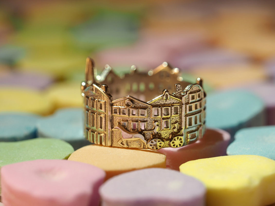 Ola Shektman loves to travel. In just a few years, she has lived in no less than six different cities. A passion she expresses in her work: Ola manufactures sublime rings bearing the image of the architecture of different cities Paris, New York, London and Berlin. Each ring is unique and allows the owner to proudly wear jewelry emphasizing his city.
