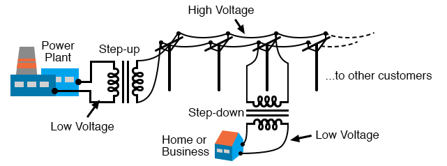 Transformers enable efficient long distance high voltage transmission of electric energy.